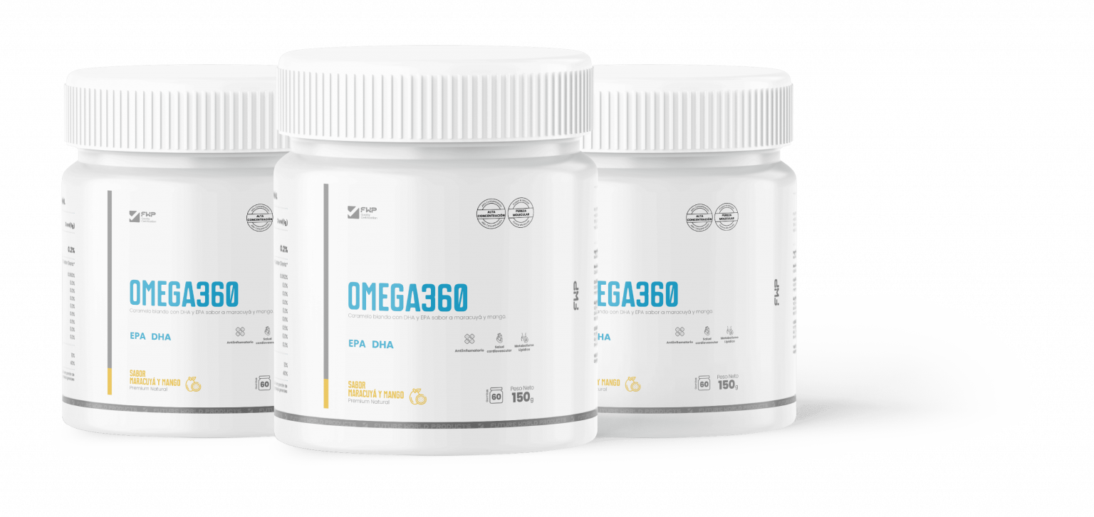 Omega 360° es un suplemento nutricional de FWP que aporta ácidos grasos Omega‑3 (EPA y DHA) para favorecer la salud cardiovascular, cerebral y articular, en formato de gomitas saborizadas para un consumo fácil y agradable.